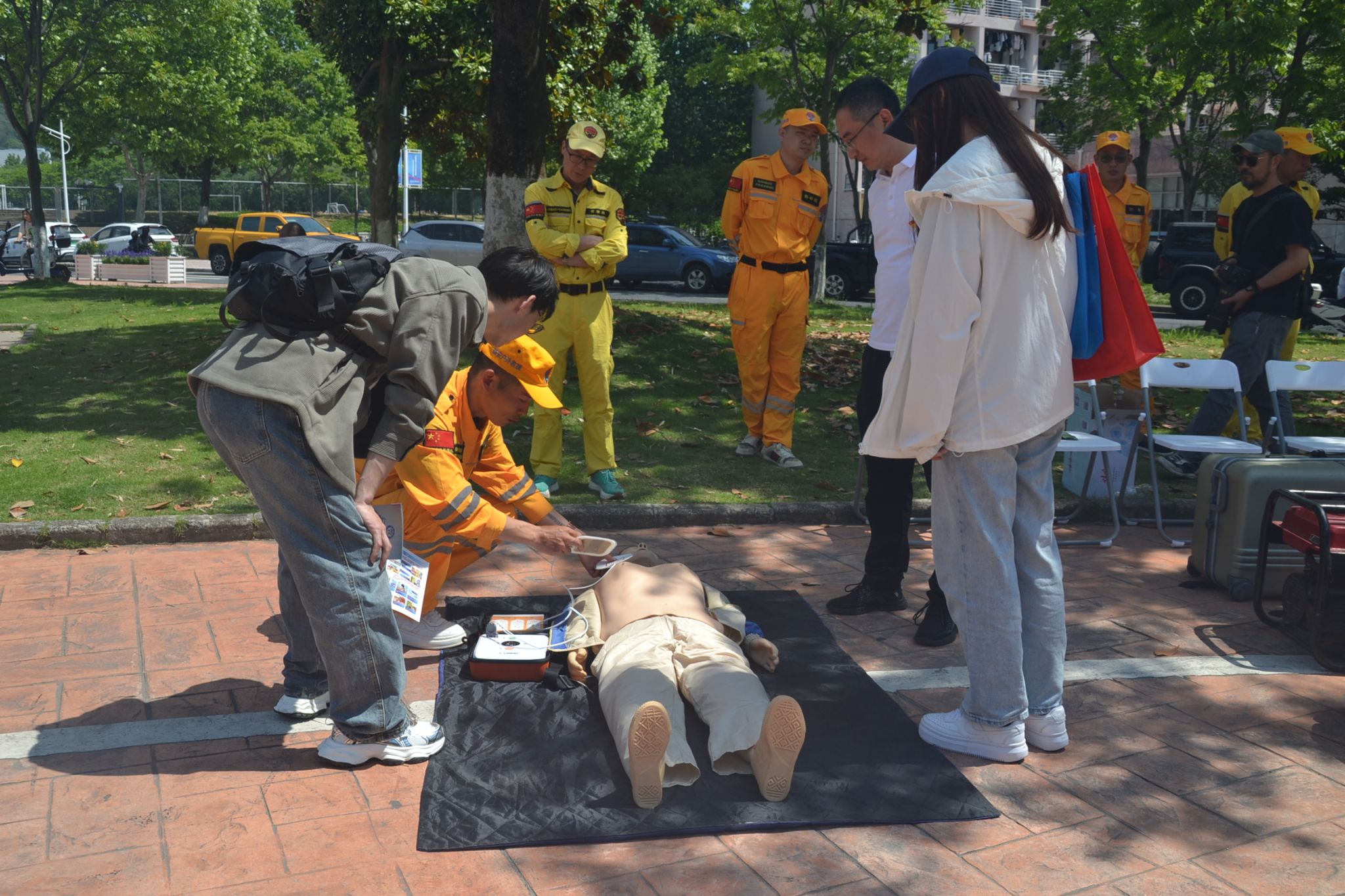 本次宣傳活動以師生喜聞樂見的形式開展。現場設19個宣傳和互動點位,結合展板資料宣傳、應急救援裝備展示、海姆立克急救、心肺復蘇、AED心臟除顫體驗等活動,通過現場體驗、互動抽獎和宣傳講解的方式,向師生講解了山洪、暴雨、臺風、地震等自然災害防災救災及自救互救知識。活動現場師生參與踴躍,互動頻繁。