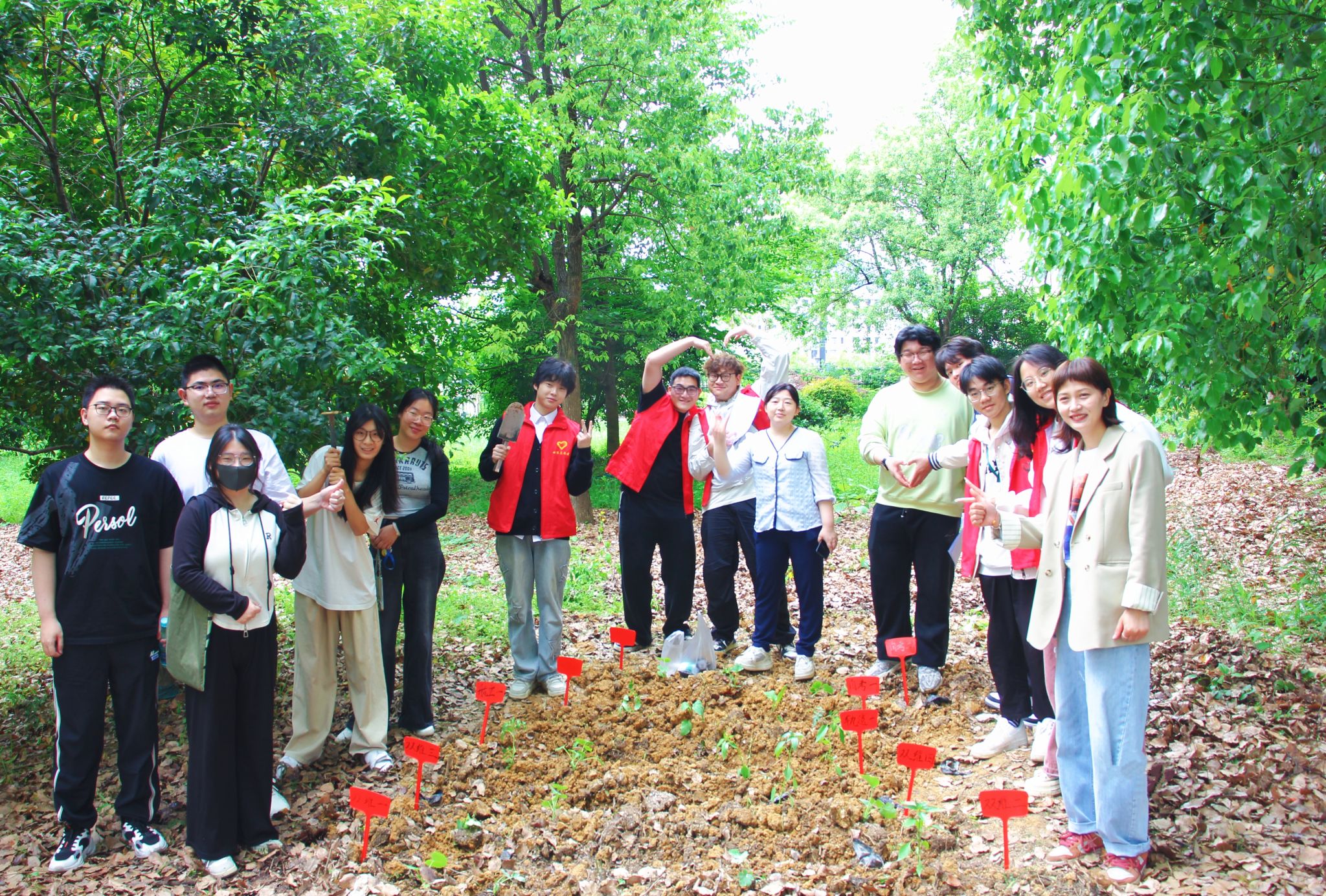 活動以“立體課堂”為設計理念:理論環節中以圖文形式講解常見植物特性、藥用價值,帶領學生認識艾草、半夏、魚腥草等本草植物的形態特征與藥食價值,將抽象知識轉化為可感知的生活應用場景;實踐環節則將校園綠地化為“競技賽場”,分組在限定區域內通過葉片辨識、氣味捕捉等方式完成植物速認挑戰;最后在種植體驗區完成植物的栽培全流程,從翻土的力度把控到播種的間距考量,均體現對植物生長規律的實踐認知。