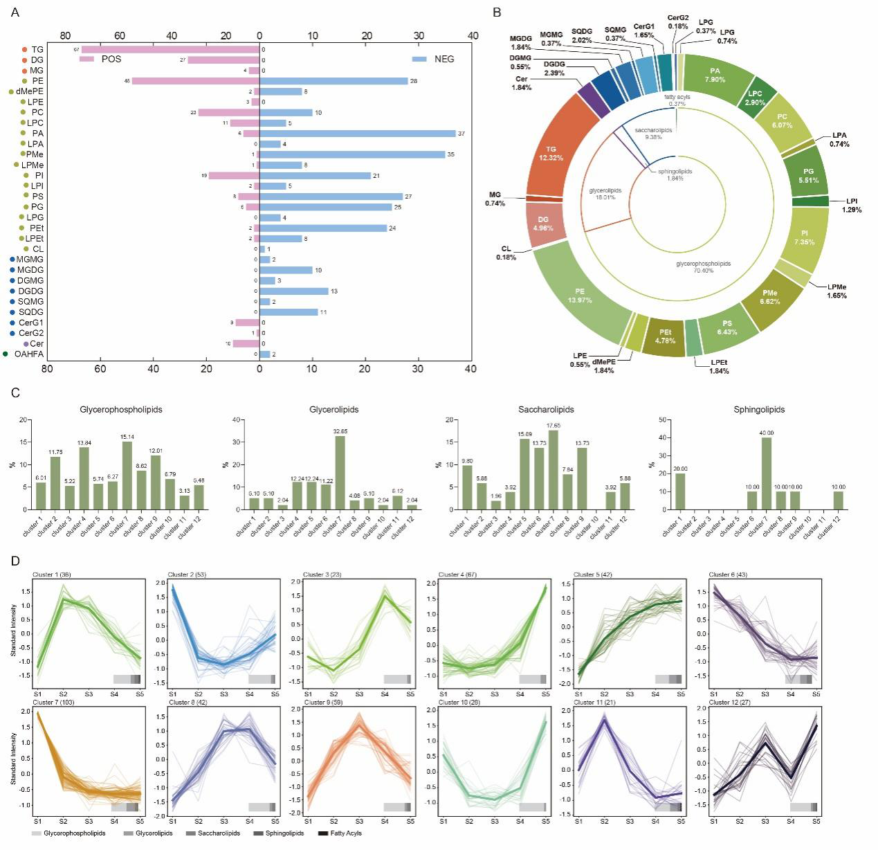 Figure 1. Identified lipid sub-classes in hickory embryo and changing trends of the lipid molecules.